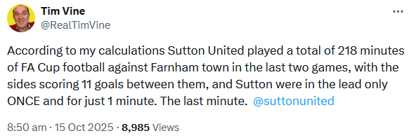 sounded great and a biggy for Farnham, any idea of the attendance figures Lighthouse?Lighthouse Wasn’t sure which cup game to attend. Decided on Farnham v Sutton. Apart from about 20 minutes before half time it was a terrific game. Farnham will feel gutted about missing glorious chances at 1-0 and 2-1 and conceding at the death. Sutton looked poor defensively and Farnham will be at the top end of the SPL along with the likes of GLoucester and Walton & Hersham. Not sure I’ll see a better game this season.